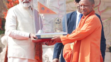 श्रीराम जन्मभूमि मंदिर के शिखर पर ध्वजारोहण